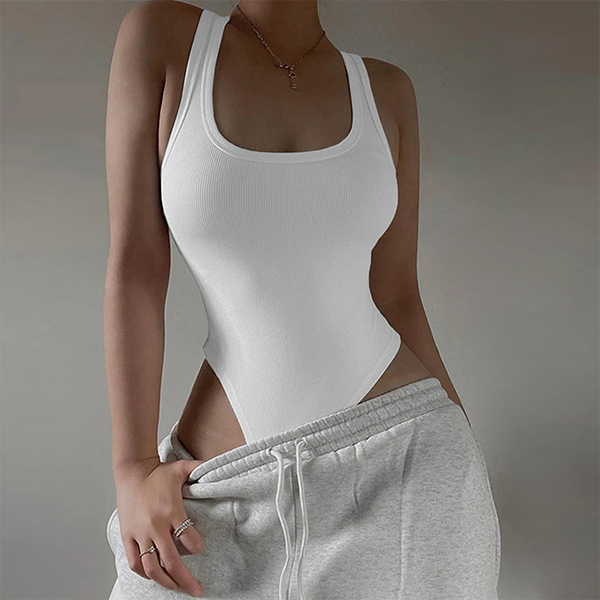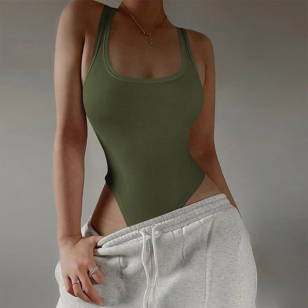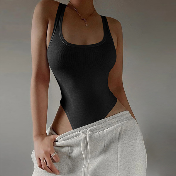 This sexy bodysuit features a solid color design with a square neckline and a backless cut for a daring and alluring look. The form-fitting silhouette and stretchy fabric create a flattering and comfortable fit, perfect team with hot shorts or a mini skirt!