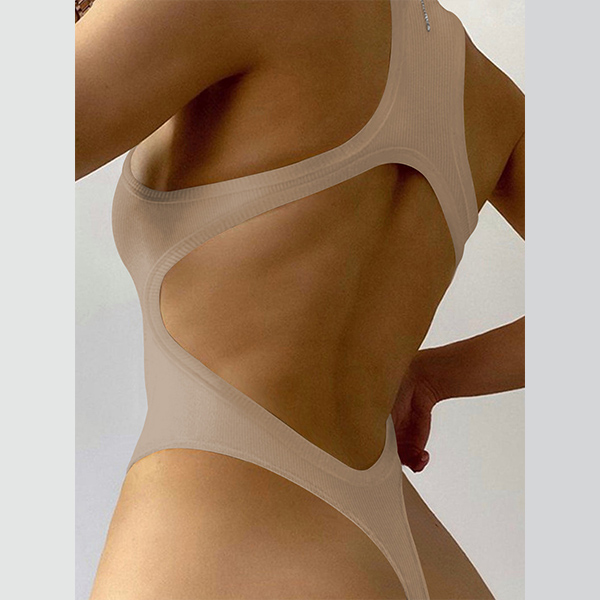 Sexy Solid Color Square Neck Backless Bodysuit