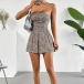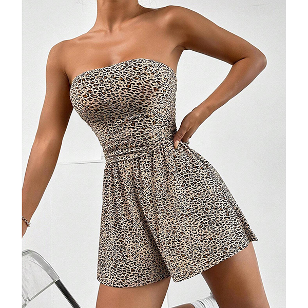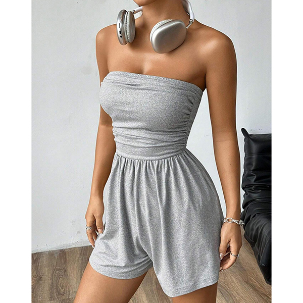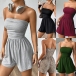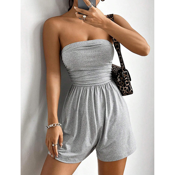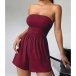 Sexig enfärgad axelbandslös sparkdräkt med hög midja