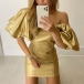 Sexy Square Collar Lantern Sleeve Slim Fit Party Dress
