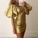 When stepping into a party with this dress,you can easily arouse a splash! The square collar and lantern sleeve design make this piece full of distinctive and attractive vibes. Your slender figure also can have a display in this dress. You can easily be the focus in this dress!