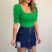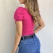 Sexy Square Collar Short Sleeve Solid Color Slim Fit T-shirt