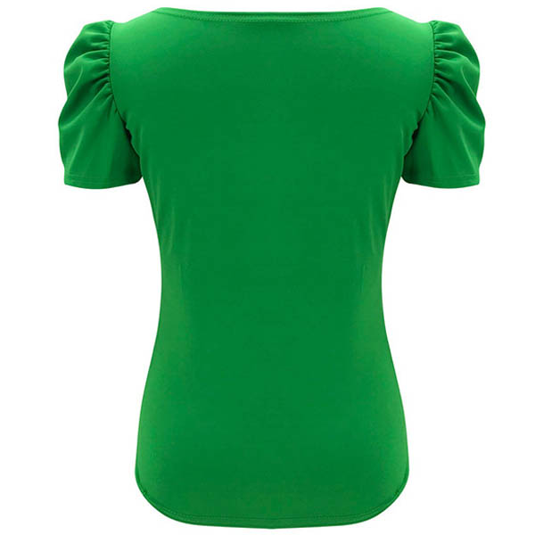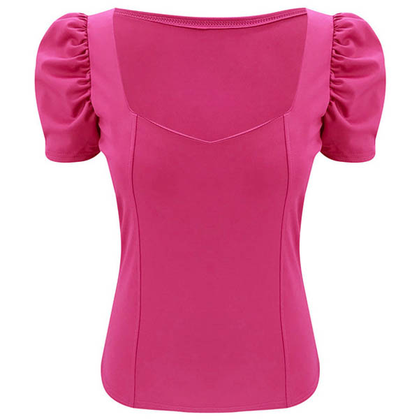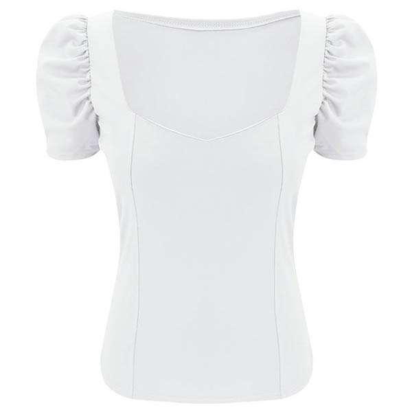 This t-shirt comes with a solid color,the unique short sleeve and square collar design will make this piece look more attractive,while the fit silhouette design can showcase your perfect body-line. No matter what kind of bottoms you pair with,it can hardly go wrong!