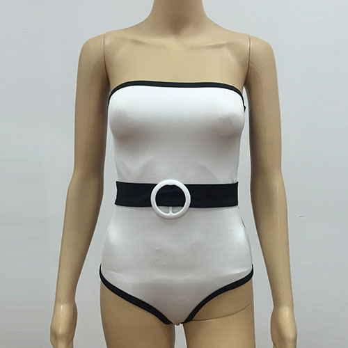 Strapless style,with contrast color design,sexy and charming. This one-piece swimsuit is