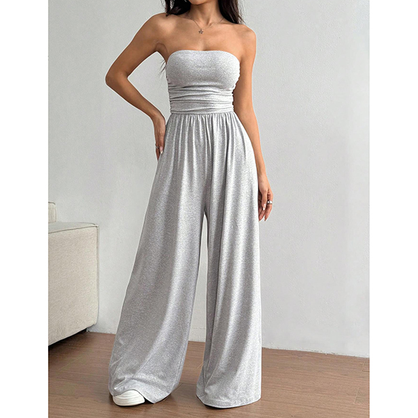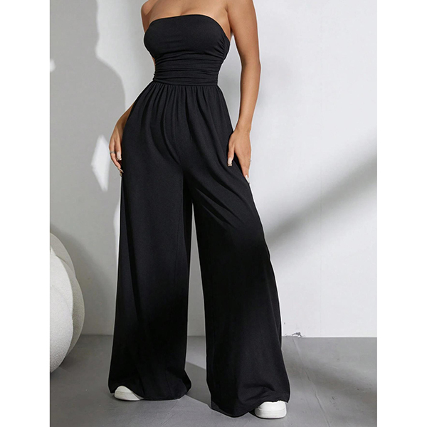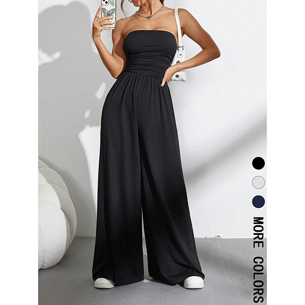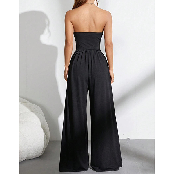 Sexig axelbandslös jumpsuit med markerad midja och vida ben