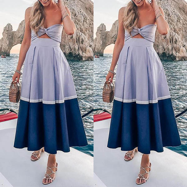 Wow,you look so charming and beautiful in this dress! Strapless design gives you the chance to showcase your charming shoulder and seductive collarbone,while the contrast color design will make this piece look more attractive. Matching with your sexy heels and sparkle necklace,you would achieve for a stunning appearance!