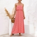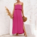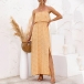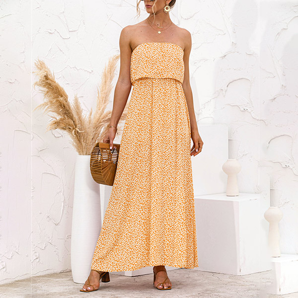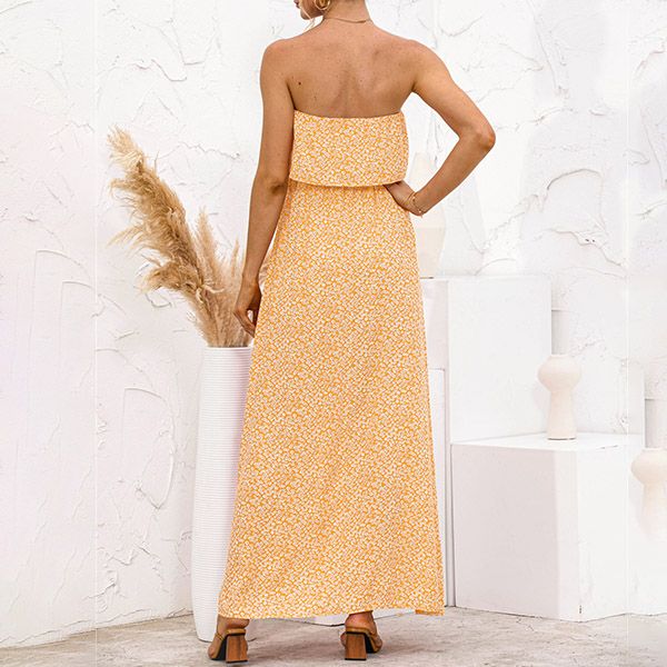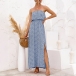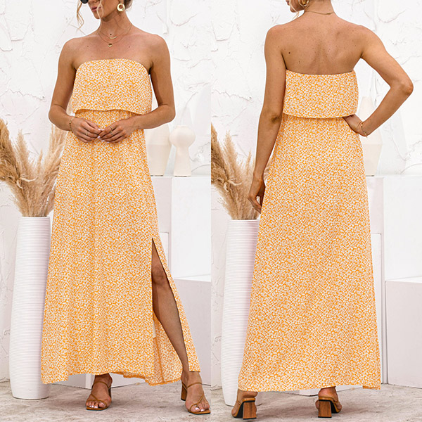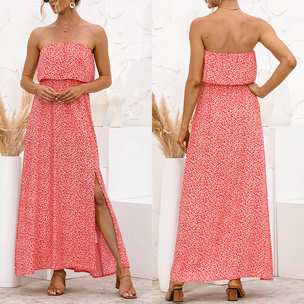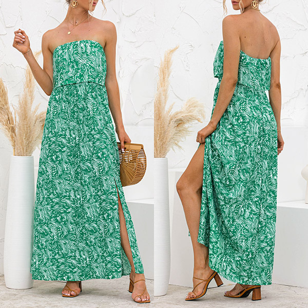As for a sexy and charming look,you can just have a try this dress. Strapless style,with high waist,slit hem and a maxi length,this dress not only can exude your sexy and alluring side,but also can showcase your slender figure. On these sun-soaked summer days,you can just match with a sweet straw hat and bohemian style necklace to gain more eyes.
