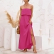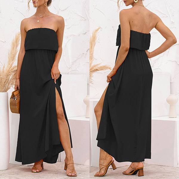 Sexy Strapless High Waist Slit Hem Dress