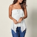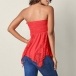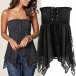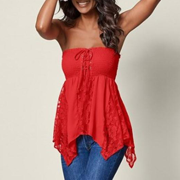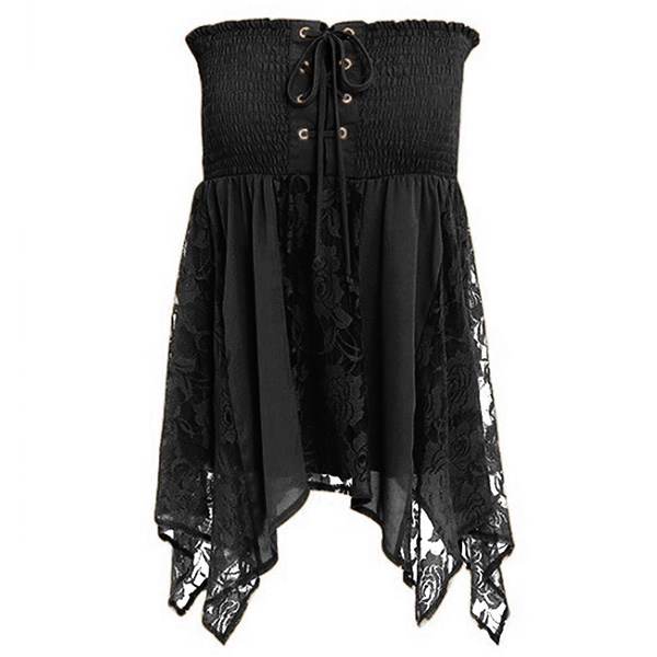 You can easily expose your charming skin through this wonderful top. Strapless design can make you look sexy and flirty,while the lace spliced irregular hem and lace-up design will make this piece look more attractive. You can add a sparkle choker necklace to have a more stunning appearance.