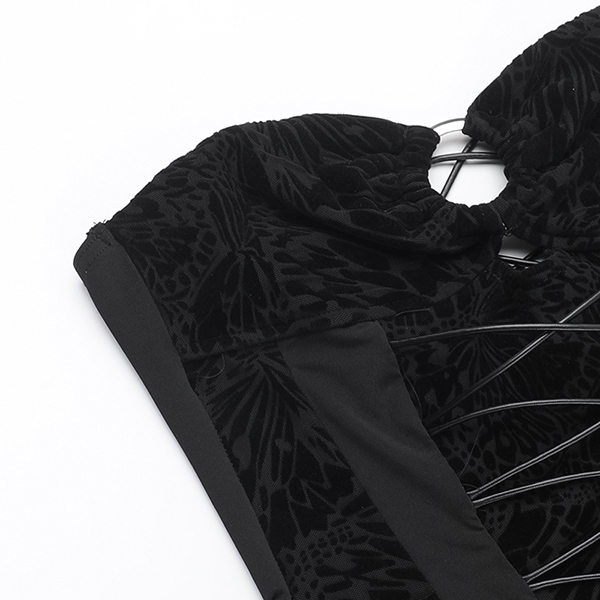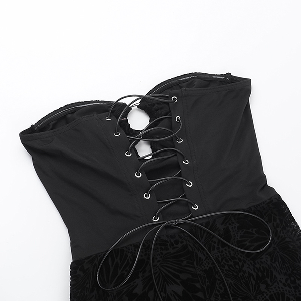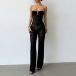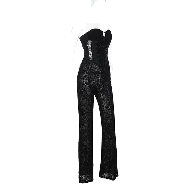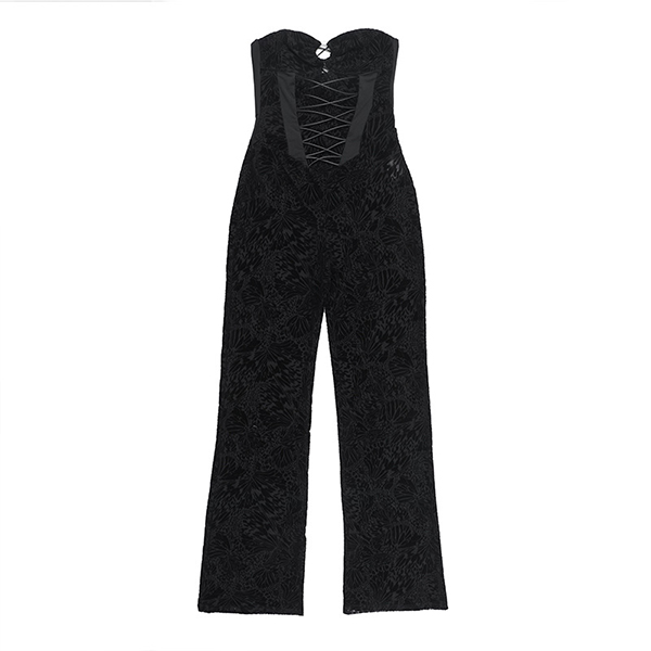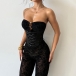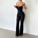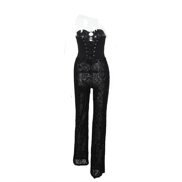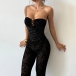 Spetsjumpsuit, sexig axelbandslös rak modell med O-ring framtill