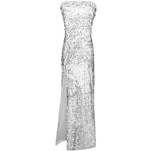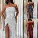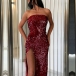 Sexy Strapless Slit Hem Sequin Party Dress