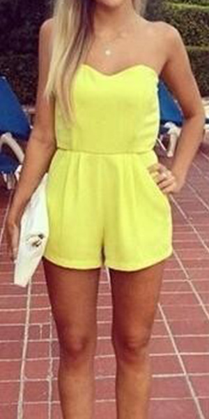 Update your style with this romper. Strapless style,with a solid color and high waist design,