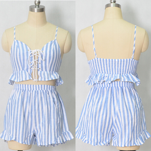 Sexy, chic and fashion, your closet should have this set! Striped style, with front crossover, sleeveless