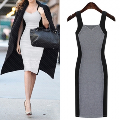 Sexy Style Sleeveless V-Neck Colorblocked Bodycon Dress
