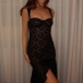 Fängsla hjärtan i denna förtrollande spetsklänning som hyllar feminin romantik med dramatisk stil. Den hjärtformade halsringningen ramar vackert in din dekolletage och skapar en universellt smickrande form som framhäver dina naturliga kurvor. Lyxigt spetstyg faller elegant över din kropp och erbjuder en delikat textur och tidlös sofistikering. Lekfulla volanger och oregelbundna fålldetaljer ger dimensionell rörelse och fantasifull charm. Vill du ha en?