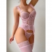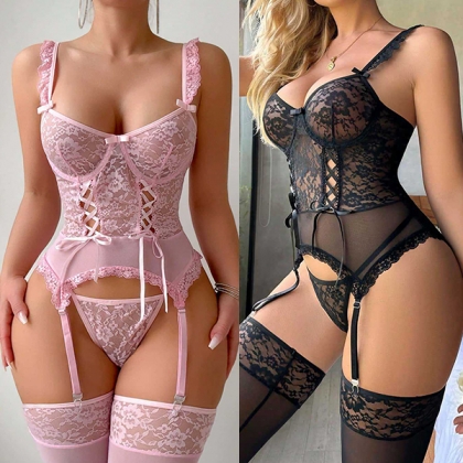 Sexigt set med hjärtformad urringning, volangdetaljer och snörning