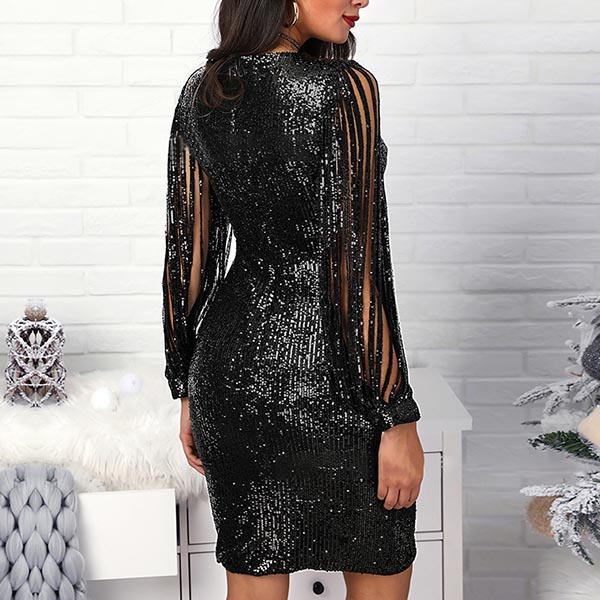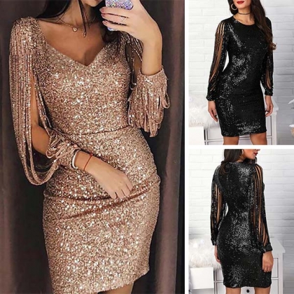 Looking for a shinning dress for post-work cocktails and dinner dates? Then look no further than this dress! The tassel long sleeve and v-neck design make this piece look so sexy and distinctive,while the fit silhouette design showcase your perfect curve. Paired with your sexy heels and elegant clutch,you can easily be the most stunning goddess!