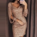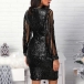 Sexy Tassel Long Sleeve V-neck Slim Fit Sequin Dress
