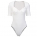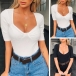 Sexy U-neck Short Sleeve Solid Color Bodysuit