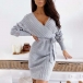 Stylish,cozy yet sexy,this knit dress is yearning for a place in your wardrobe when the days get cold. Features a solid color,the v-neck and dolman sleeve design can make you look sexy and flirty,while the fit silhouette and waist strap design will highlight your figure. Just slip into this wonderful piece to express your beauty!