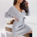 Sexy V-neck Dolman Sleeve Solid Color Slim Fit Knit Dress