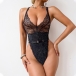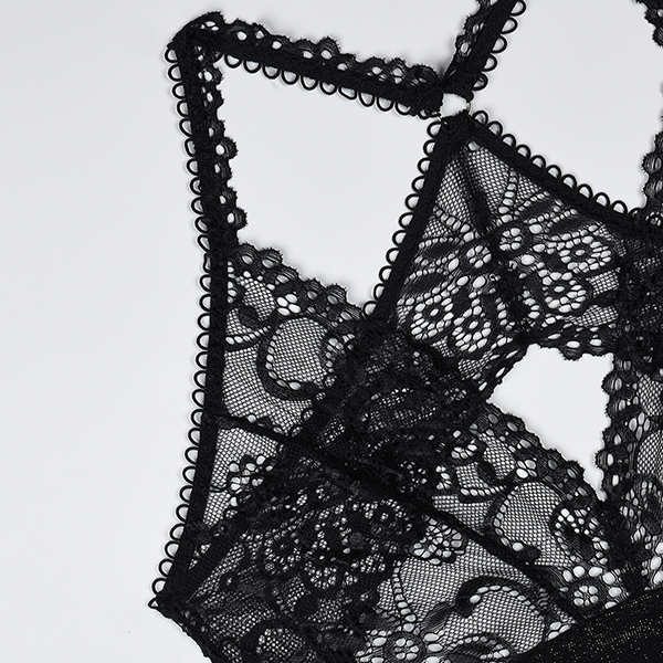 Sexig spetsbody med djup V-ringning, halterneck och öppen rygg