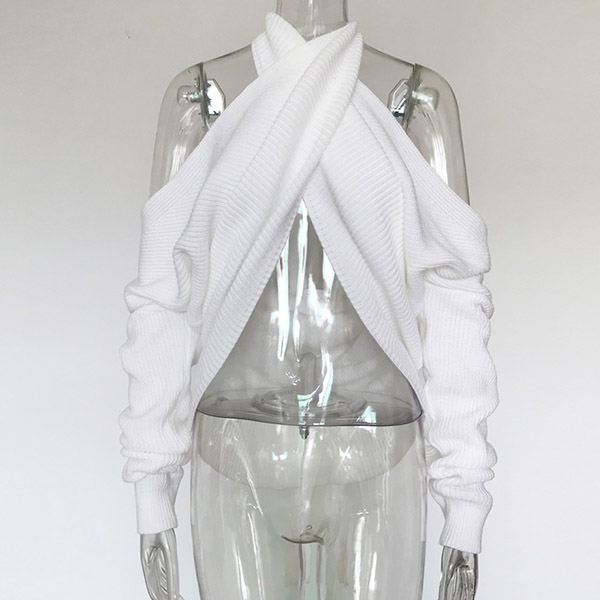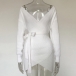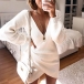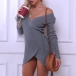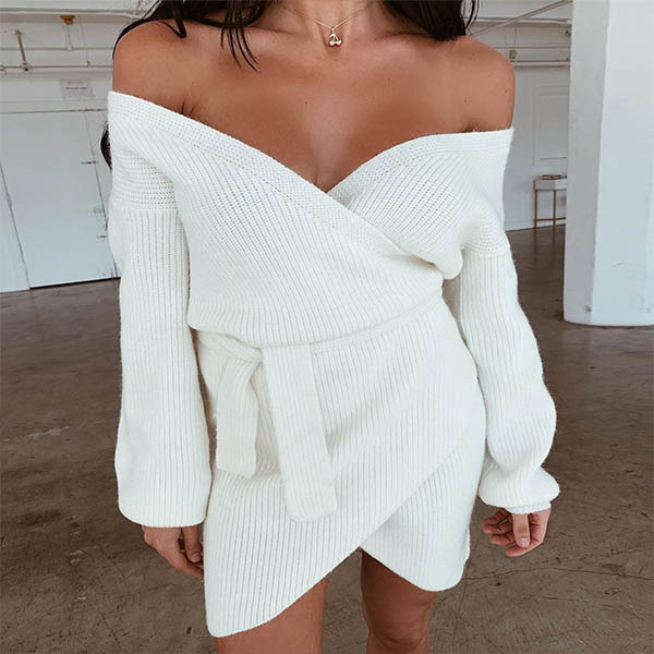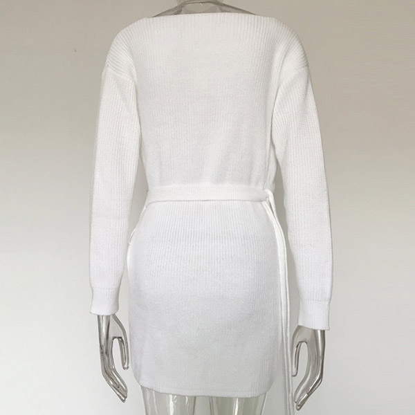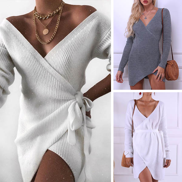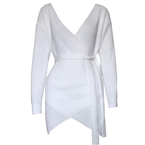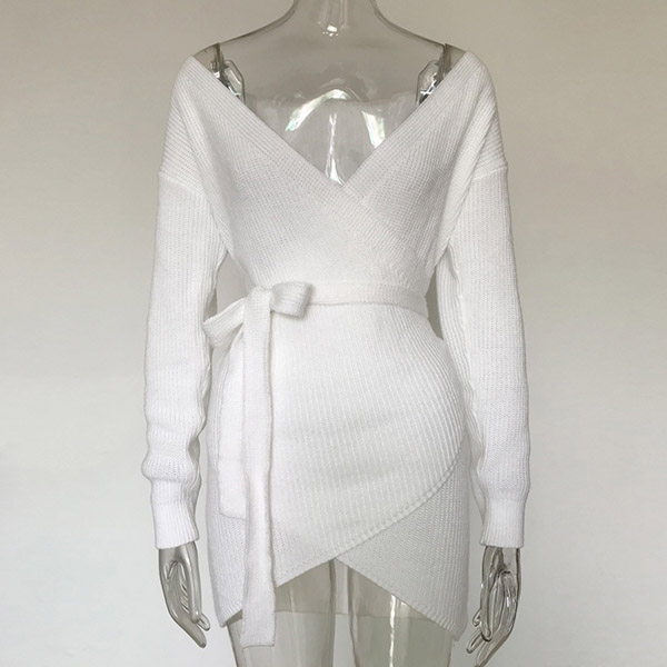Sexy V-neck Irregular Hem Long Sleeve Lace-up Slim Fit Knit Dress