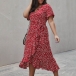 Sexy V-neck Irregular Ruffle Hem Short Sleeve Printed Dress