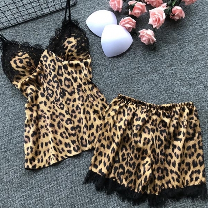 Wanna your home time and sleeping time full of flirty vibes? Then choose this nightwear set. It consists of a backless v-neck leopard sling top and a shorts,its super soft fabric can give you an utmost comfort,while the lace spliced details will add some extra charm. You can trust tShorts Length to have a good sleeping!