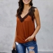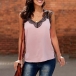 Sexy V-neck Lace Spliced Solid Color Sling Top