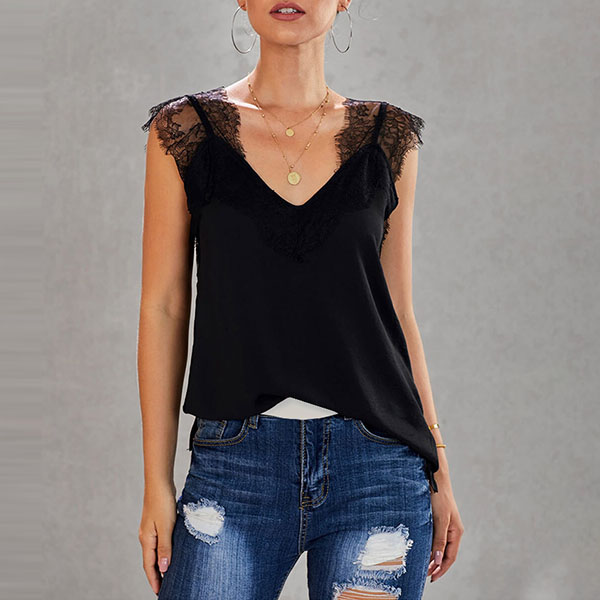 This top comes with a classic yet stylish black tone,the v-neck and lace spliced details can lend you a dash of sexy and flirty vibes. For these sun-soaked summer days,this wonderful top can be a good choice to keep you cool and comfy while it exudes your style.