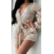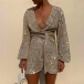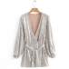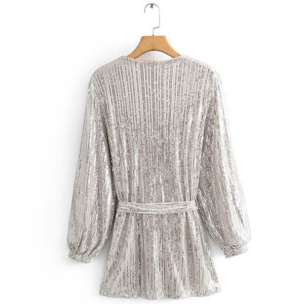 Sexy V-neck Lantern Sleeve Irregular Hem Sequin Dress