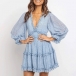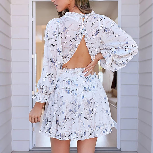 This dress that exudes sweet and feminine vibes is worth to be your timeless wardrobe staple. Features chic printed details,the v-neck,lantern sleeve and ruffle design are the highlights,which make this piece look so sexy and flirty. Dress it up with your heels and sparkle necklace,you can look beautiful enough!