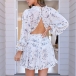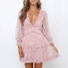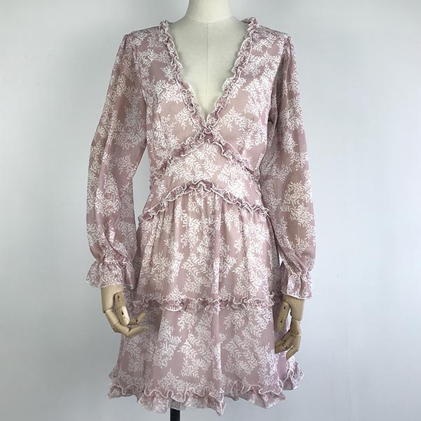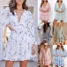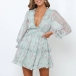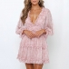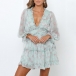 Sexy V-neck Lantern Sleeve Ruffle Printed Dress