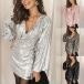 Sexy V-neck Lantern Sleeve Slim Fit Dress