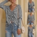Sexy V-neck Long Sleeve Drawstring Striped T-shirt