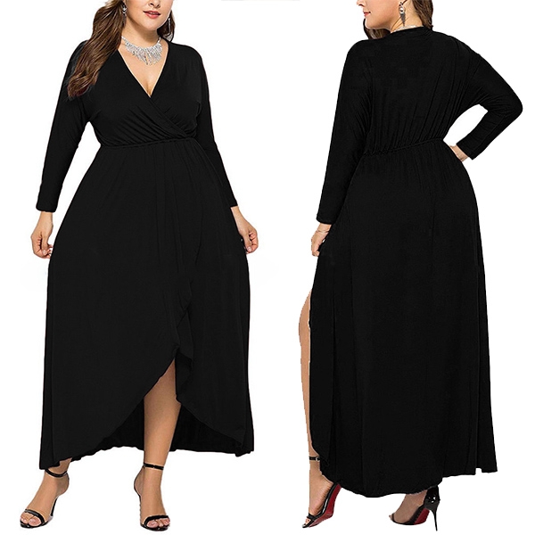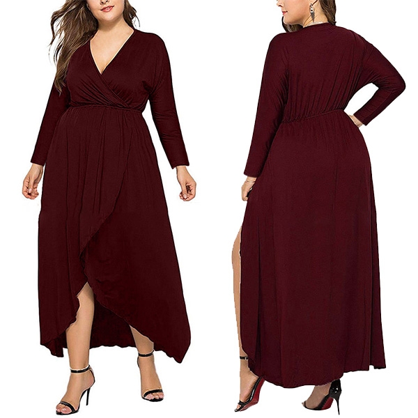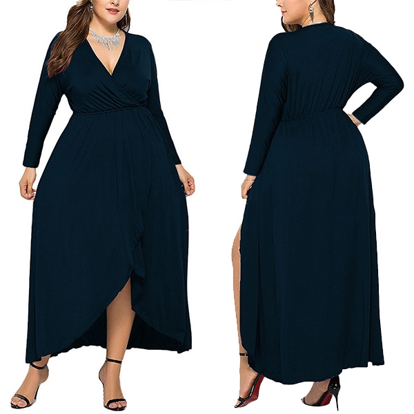 long sleeve,v-neck and high-low hem design,this flirty dress knows how to portray your elegant and