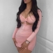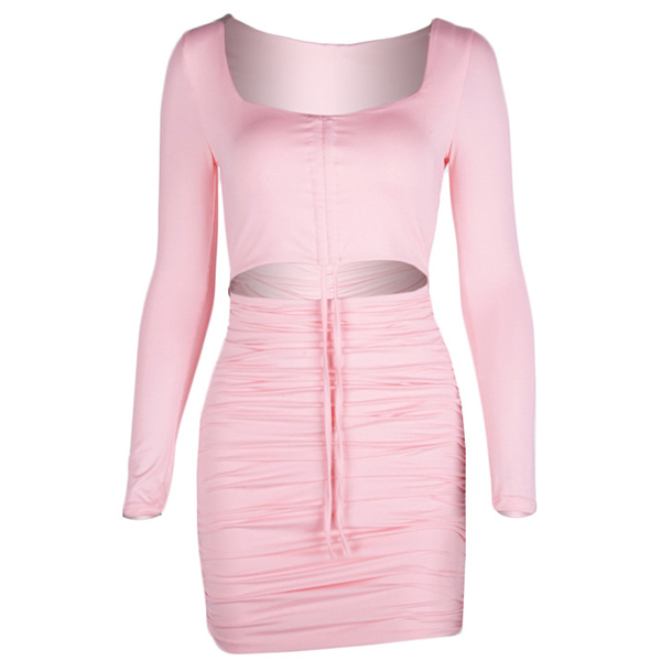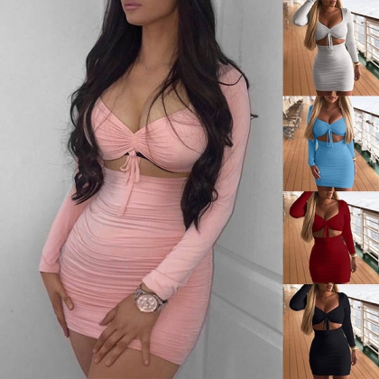Sexy V-neck Long Sleeve Hollow Out Tight Dress