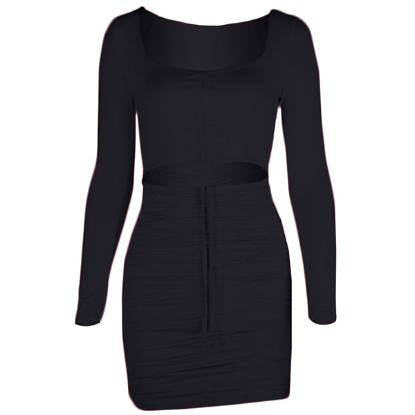 Let your style make the ultimate statement wearing this sexy dress. The v-neck and hollow out design at the waist part will lend you a sexier look,while the tight silhouette design can amplify your perfect figure. You can easily be the focus when you don this little stunner.