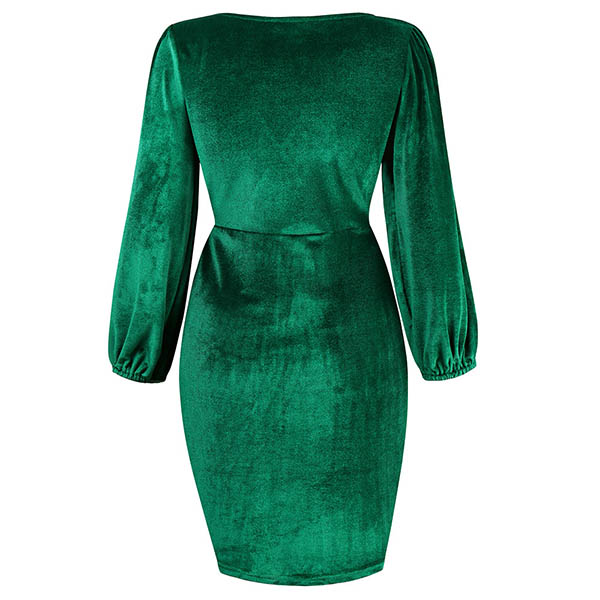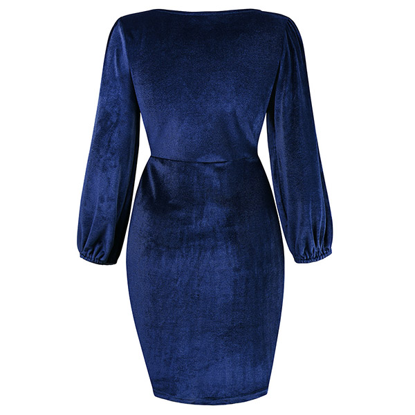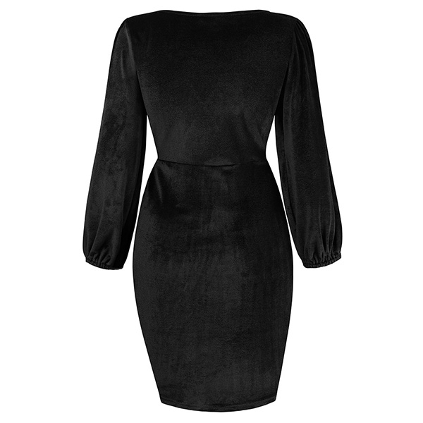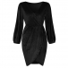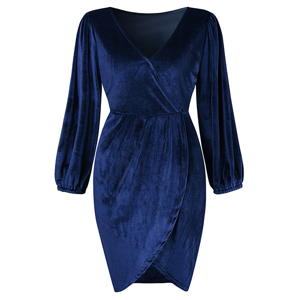 Sexy V-neck Long Sleeve Irregular Hem Solid Color Dress