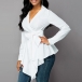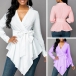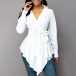 Sexy V-neck Long Sleeve Irregular Hem Solid Color Shirt