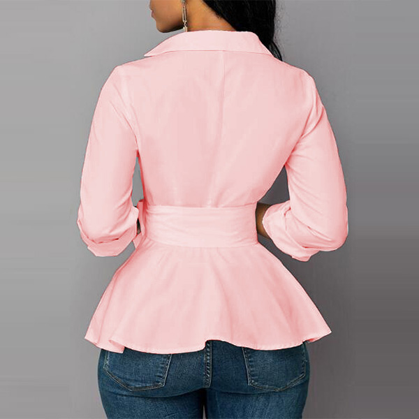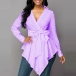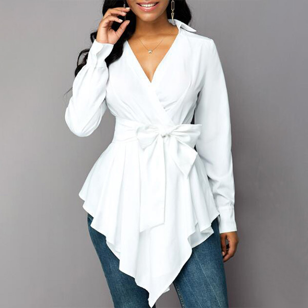 Attracted by this sexy and chic shirt? Then invite it to your wardrobe to update your style. It comes with a solid color,the v-neck and irregular hem design are the highlights,which can help you gain more eyes. The bow-knot waist strap design will further enhance its charm. Dress yourself up with this little piece.