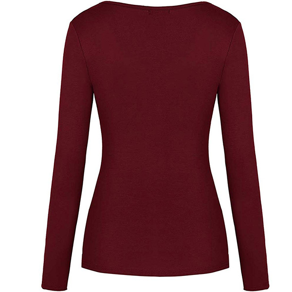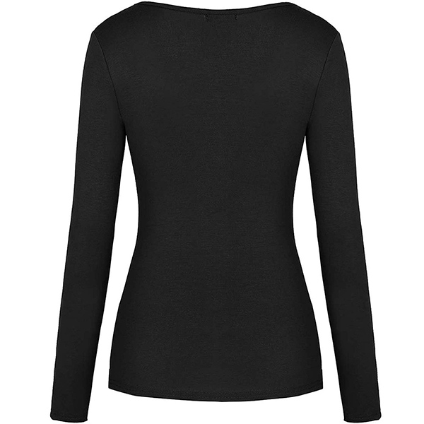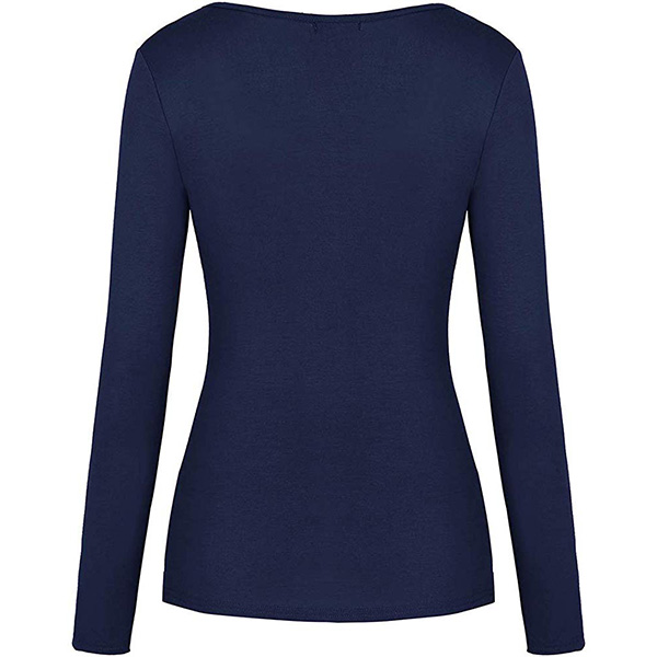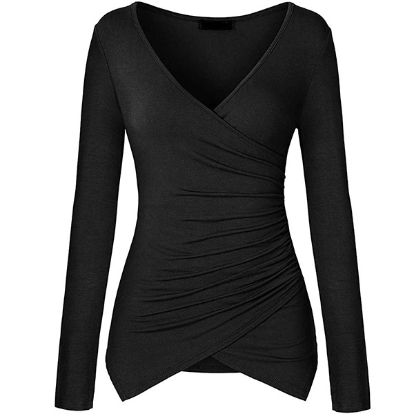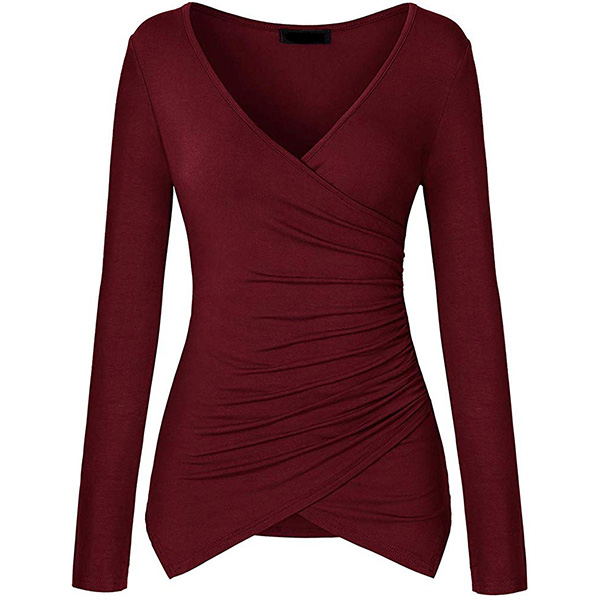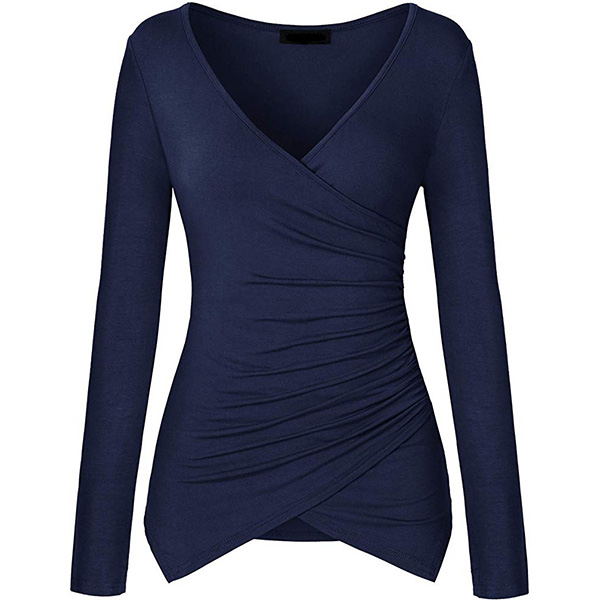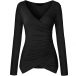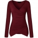 Sexig V-ringad långärmad oregelbunden fåll Enfärgad T-shirt.