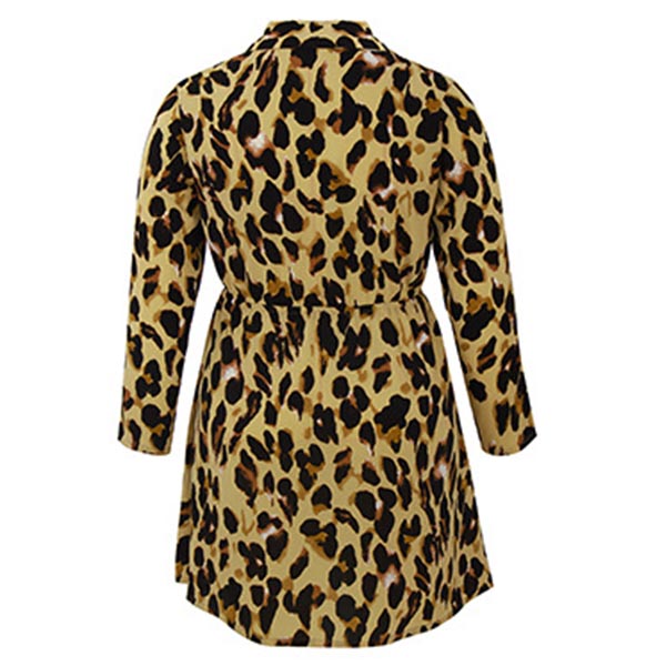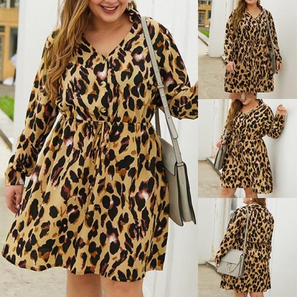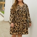 Sexy V-neck Long Sleeve Leopard Printed Plus-size Dress