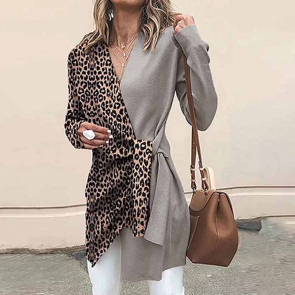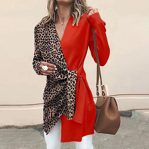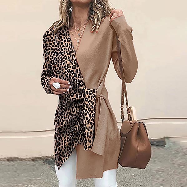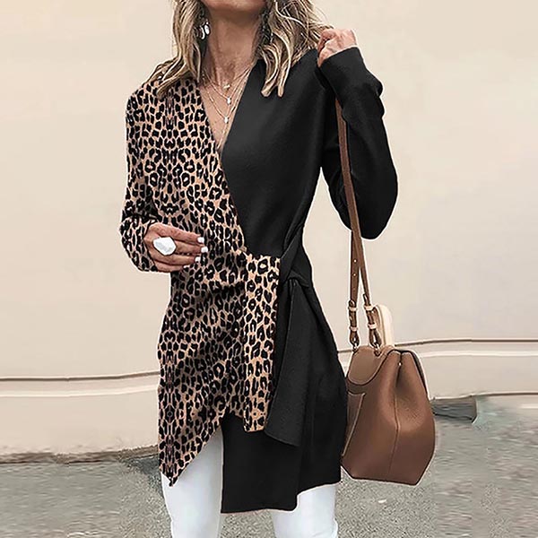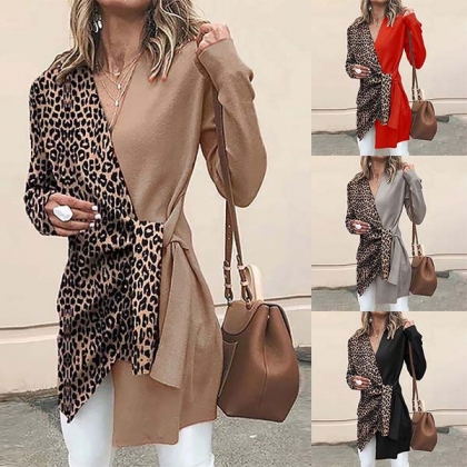 You can easily gain more eyes when you wear this wonderful top. Contrast color element and leopard spliced design make this piece look so eye-catching,while the v-neck and lace-up design will enhance your feminine appeal. You can easily be the focus in this piece.
