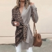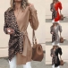 Sexy V-neck Long Sleeve Leopard Spliced Lace-up Top