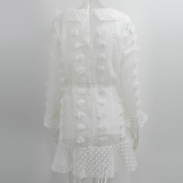 Sexy V-neck Long Sleeve Ruffle See-through Dress
