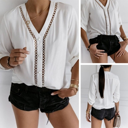 When it comes to a stylish yet flirty daily style,you can have a try this top! It comes with a solid color,the v-neck and hollow out details are the highlight,which can easily exude your feminine side. You can simply matching with your favourite bottom like shorts,skirt or jeans to finish a fashionable look!
