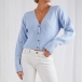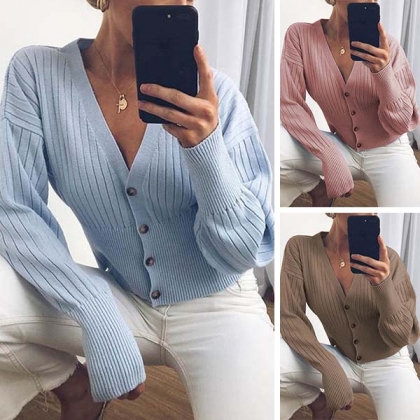 Sexy V-neck Long Sleeve Solid Color Knit Cardigan
