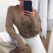 This knit cardigan can be a perfect layer to keep you warm when the days get cold. Solid color style,finished with long sleeve,v-neck,front-button and short-style design,this little piece can offer you different matching styles. Matching with a tight dress would be a good idea.
